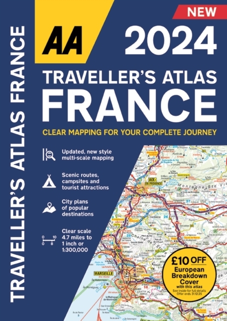 The AA Traveller's Atlas France is a brand new A4 format road atlas of France providing multi-scale mapping. Features include updated new style multi-scale mapping, GBP10 off AA European Breakdown cover promotion, scenic routes, campsites and tourist attractions. 28 city plans including Paris, Lille and Lyon.