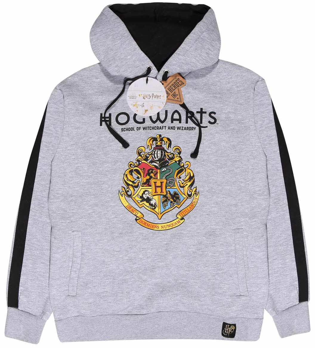 Oficiální produkt - pánská mikina s kapucí z katalogu produktů s grafikou, motivem a licencí známé knižní a filmové ságy Harry Potter. Zboží je legálně licencováno a prodáváno se souhlasem vlastníků licenčních práv.Šedá atraktivní mikina s kapucí na motivy Hogwarts Crest (Bradavické koleje) známé...