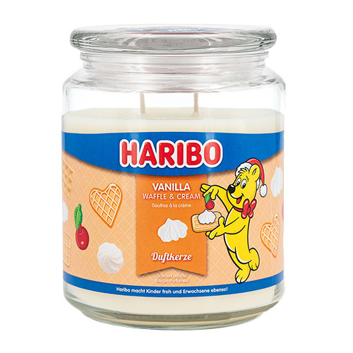 Svíčka ve skleněné dóze Haribo, Vanilkový vaflový krém, 510 g