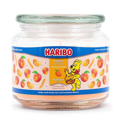 Svíčka ve skleněné dóze Haribo, Broskvový ráj, 300 g