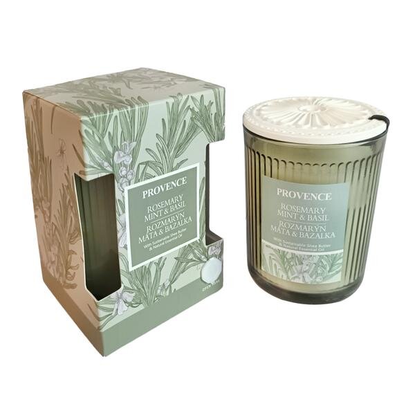 SVÍČKA VE SKLE ZELENÁ BYLINKY 7.9X10.6CM 230G