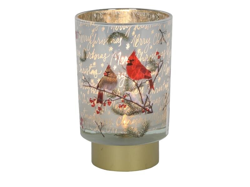 LED LAMPIČKA SKLENĚNÁ PTÁČCI V ZIMĚ ?10X15CM