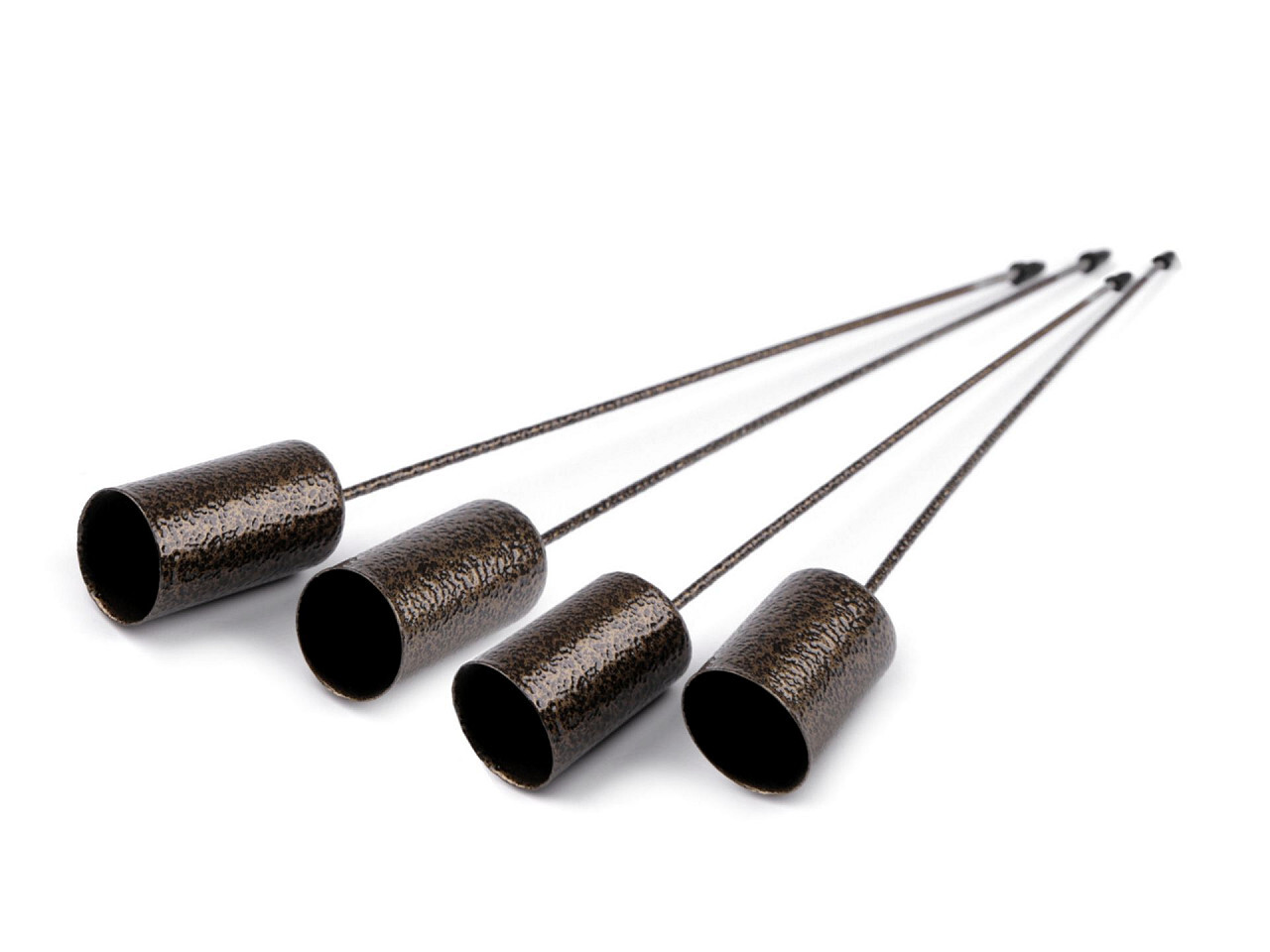 Dlouhé kovové bodce na štíhlé svíčky vám umožní umístit je do vyšších poloh. Využijete je na výrobu adventních věnců a podobných dekorací. Hodí se na zapíchnutí do polystyrenu, florexu a podobných aranžérských hmot. Uvnitř misky hrot není.Průměr misky je 2,2 cm. Výška misky je 4 cm. Spodní hrot...