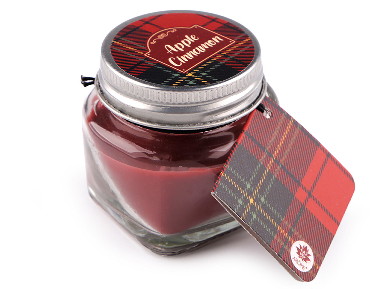 Malá vonná svíčka ve skle s jmenovkou 28 g - 1 ks - 30 (Apple Cinnamon) červená tmavá