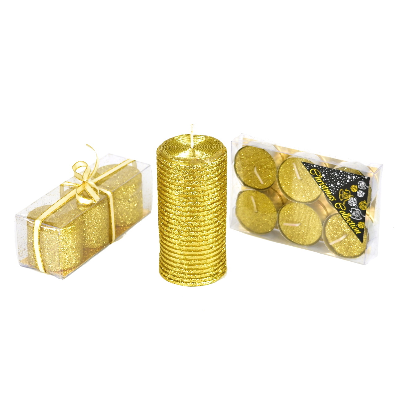 Set svíček se zlatým glitremObsahuje:velká svíčka s glitrem (výška 9,5 cm, šířka 5 cm)sada 3 ks svíček s glitrem (výška 3,5 cm, šířka 3,8 cm)sada 6 ks čajových svíček s glitremMateriál svíček: parafín, hliník prečítať celé