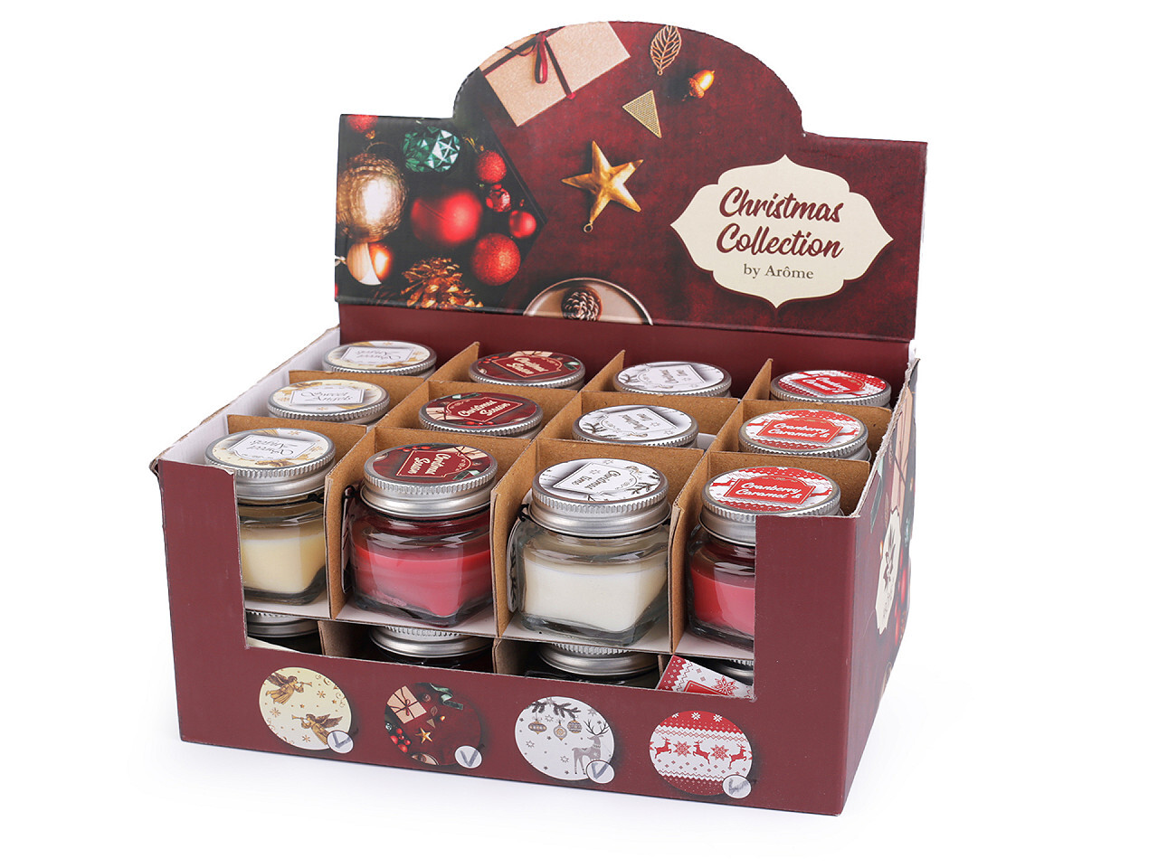 Malá vonná svíčka ve skle s jmenovkou 28 g - 24 ks - mix č. 4 vánoční