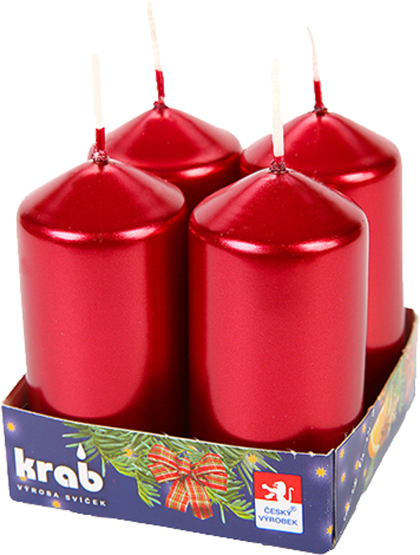 Svíčka adventní válec 40x80 mm - metalická bordó (4ks)
