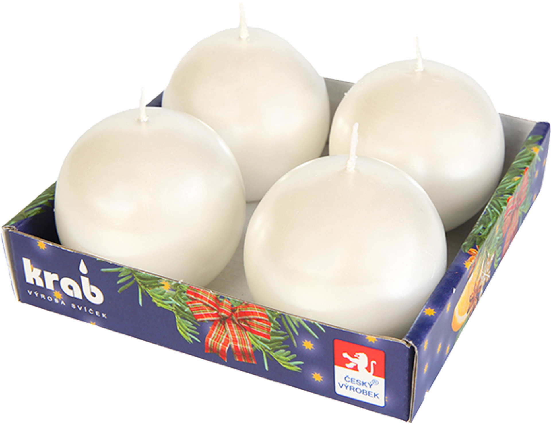 Sviečka adventná guľa 60 mm - metalická biela perleť (4ks)