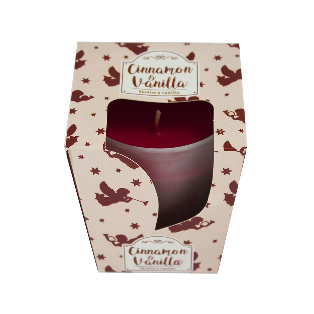 Kónická vonná svíčka v matném skle zabalená v krabičce a s vůní Skořice a vanilka prečítať celé