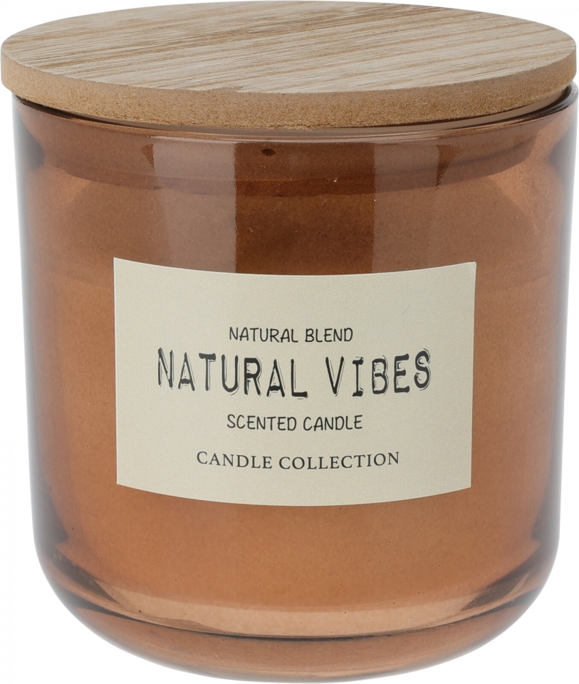 Vonná svíčka ve skle s dřevěným víčkem, světle hnědá 10,9x10 cm
