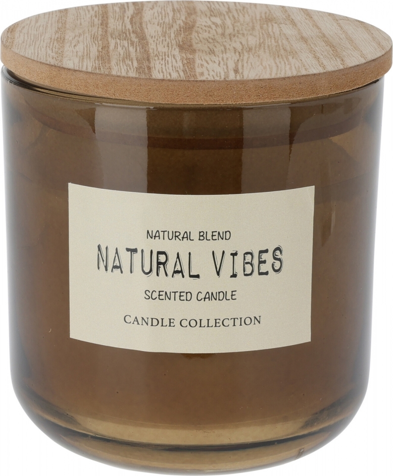 Vonná svíčka ve skle s dřevěným víčkem, hnědé sklo 10,9x10 cm