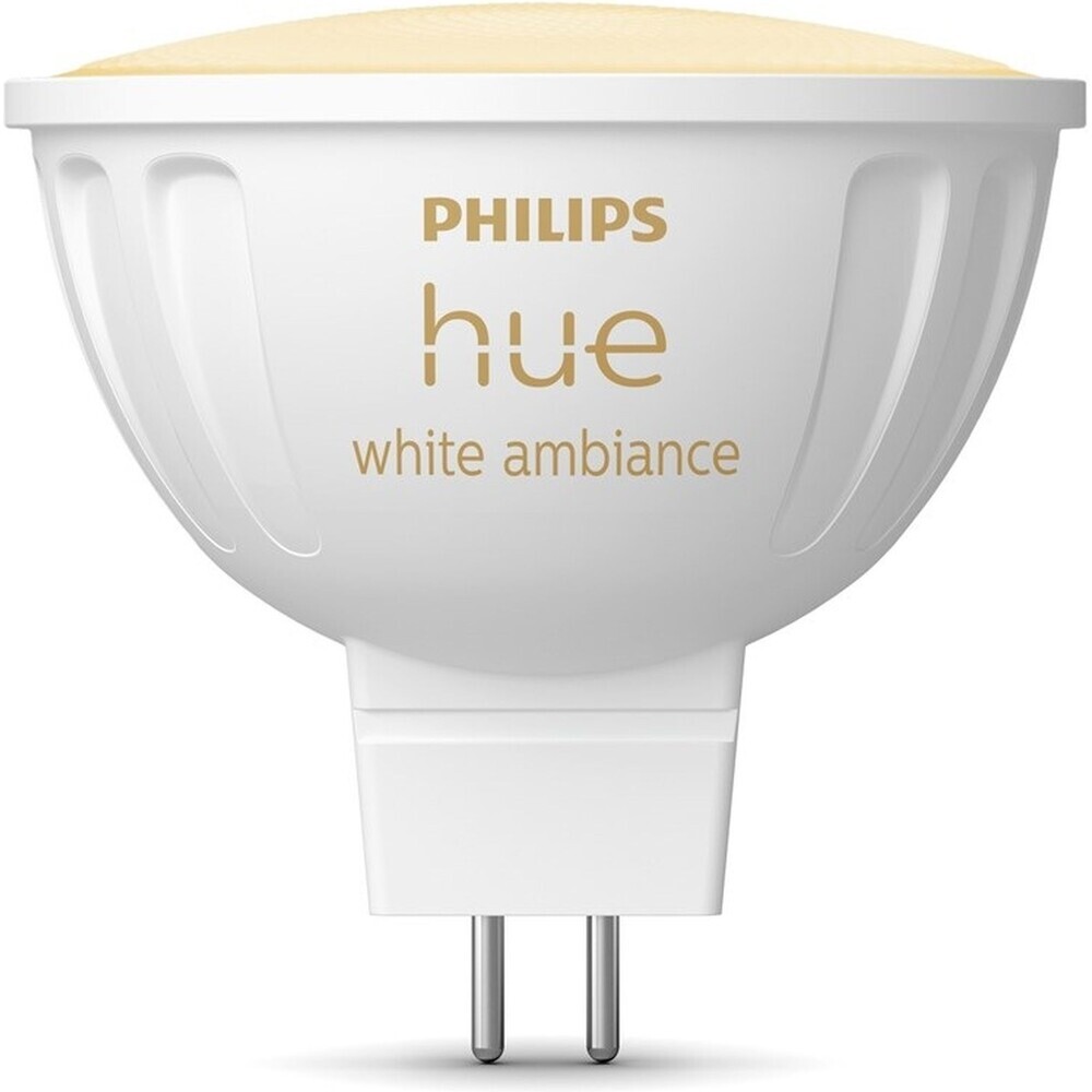 Chytrá úsporná stmívatelná LED žárovka Philips Hue Bluetooth White Ambiance s paticí GU5.3 a tvarem zdroje MR16 je určena pro vaše stávající bodové svítidlo. Její příkon je 1 x 5,1 W a životnost dosahuje až 25 000 hodin při až 50 000 spínacích cyklech. Šetří elektrickou energii v energetické...