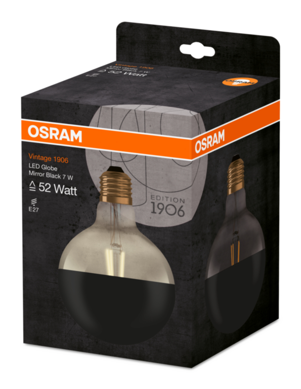 OSRAM Vintage 1906 LED CL GLOBE125 MIRROR BLACK 7W 827 E27 680lm 2700K (CRI 80) 15000h A+ (Krabička 1ks)