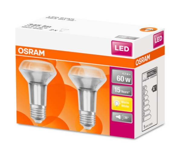 OSRAM LED STAR R63 36° 4,3W 827 E27 345lm 2700K (CRI 80) 15000h A+ (Krabička 2ks)