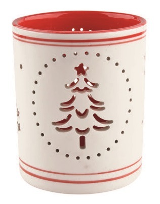 Svícen keramický bíločervený se stromečkem 9 cm