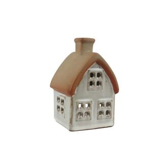 Dekorační domek na svíčku.Rozměry : 6,9 × 6,8 cm, výška 11 cm.Barva : kombinace krémová, hnědá.Materiál : keramika. prečítať celé