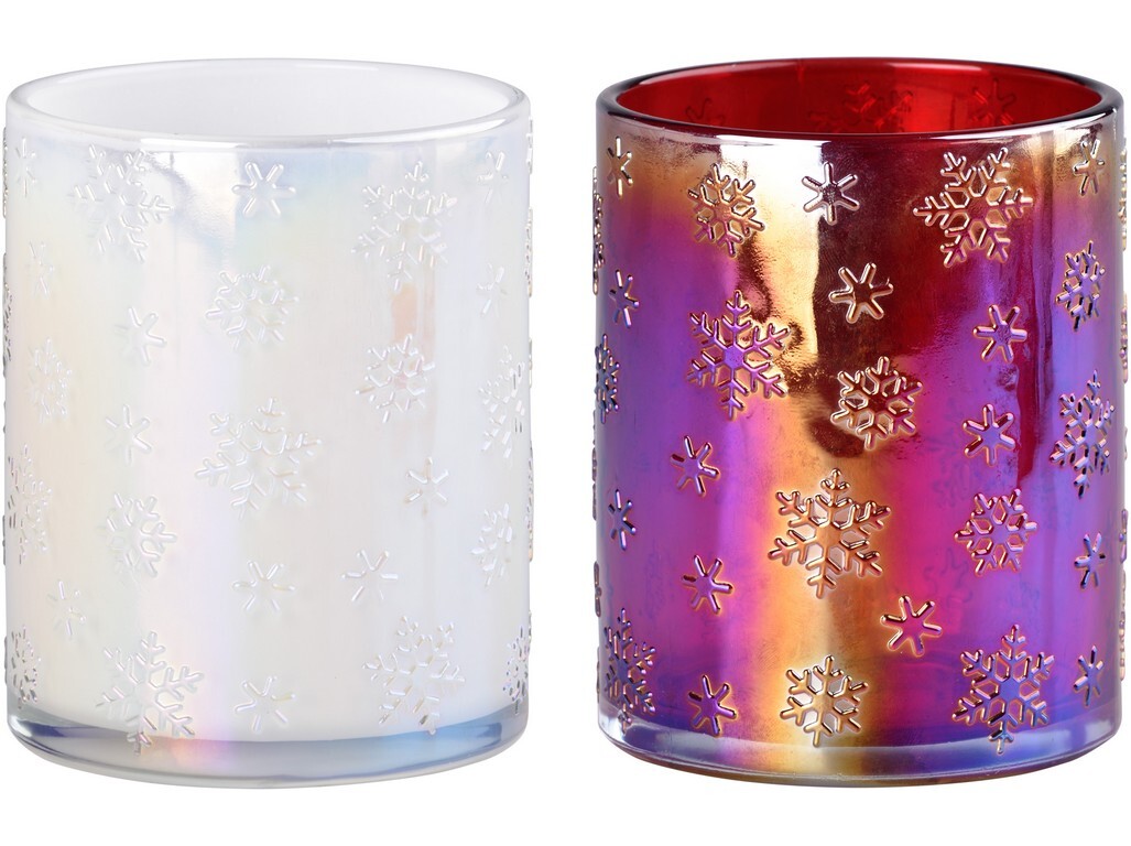 Svícen sklo 100x125 mm na čajovou svíčku, sněhová vločka, barevný mix