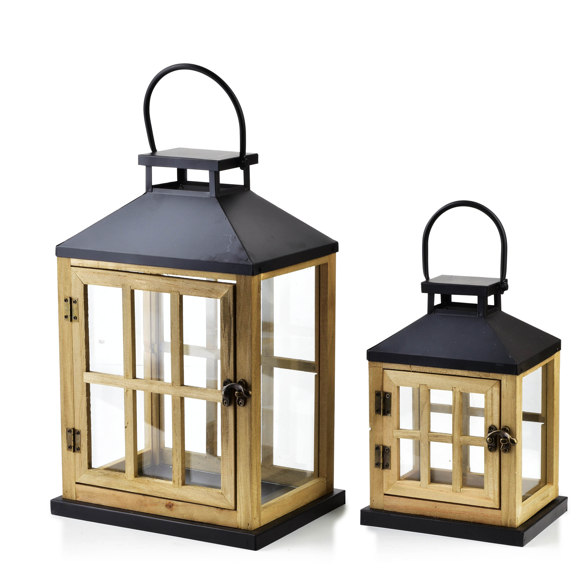 LEVI Komplet 2 latarni drewnianych17x13xH24/ 24x18xH36cm