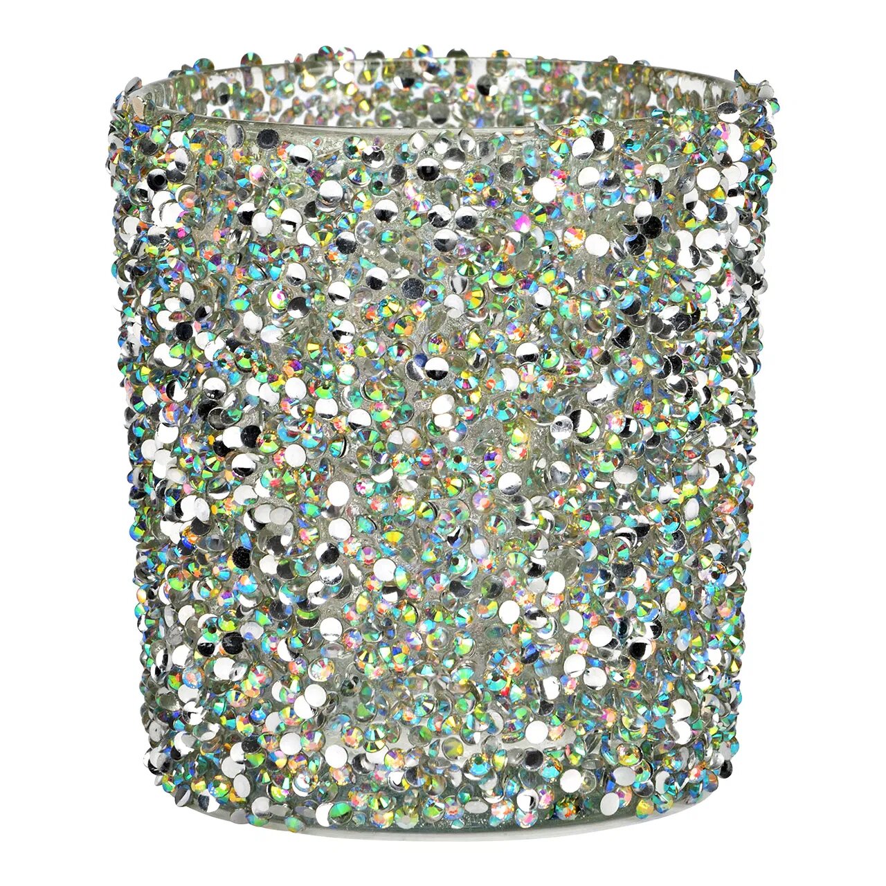 Svícen skleněný, vícebarevné třpytky 9 cm