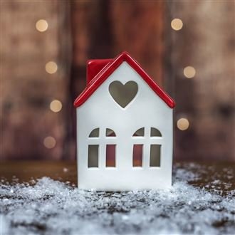 Dekorační domeček s LED osvětlením. Rozměry : 9,5 x 6,5 cm, výška 13,3 cm. Barva : kombinace bílá s červenou. Materiál : keramika. prečítať celé