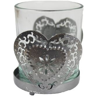 Krásná kovová dekorace na svíčku. Rozměry : 6,5 x 5,5 cm. Barva : stříbrná. Materiál : kov, sklo. prečítať celé