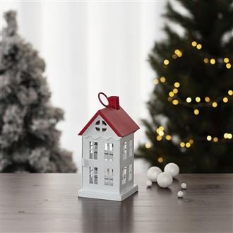 Domeček na čajovou svíčku.Rozměry : 8 x 8,3 cm, výška 17,5 cm.Barva : kombinace bílá s červenou.Materiál : kov. prečítať celé
