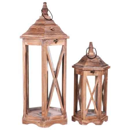 Lucerna dřevěná, barva hnědá, sada 2 kusy