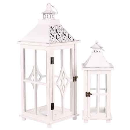 Lucerna dřevěná, barva antik bílá, sada 2 kusy.