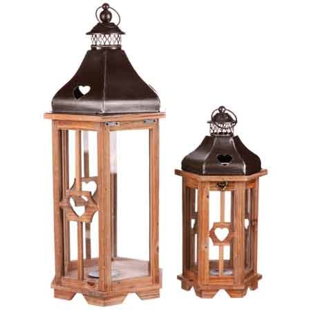 Lucerna dřevěná, barva hnědá, sada 2 kusy