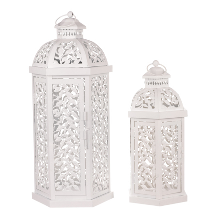 Lucerna kovová v bílé barvě. Sada 2ks.
