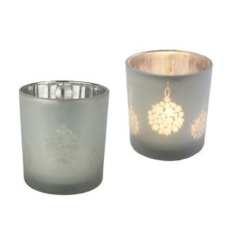 Krásný sklěněný svícen, dekor svícnu jde vidět po zapálení svíčky (viz. foto).Svícen má průměr 7 cm, výšku 8 cm.Barva: bílo - stříbrná. prečítať celé
