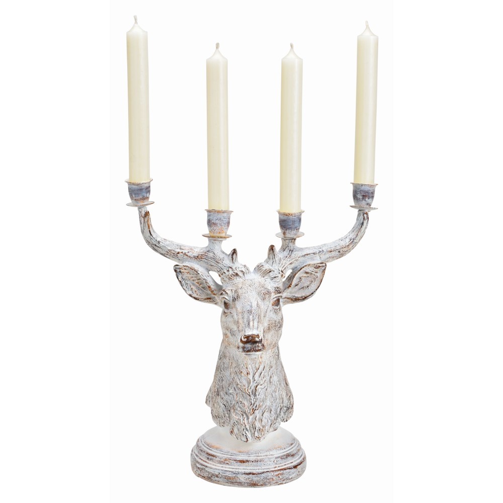 Svícen na 4 svíčky s hlavou jelena 27x15x30 cm, bílý