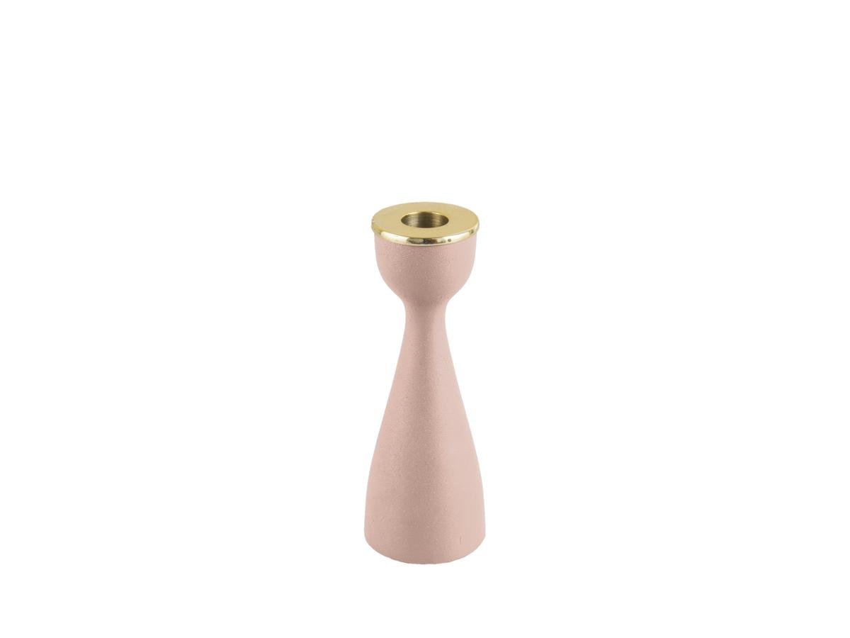 Hliníkový svícen potažený pískovou barvou.