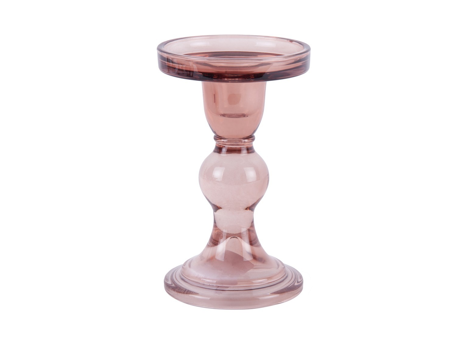 Skleněný svícen L v růžové barvě.