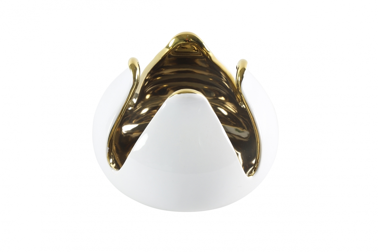 Keramický svícen bílo-zlatý 8,5x12 cm