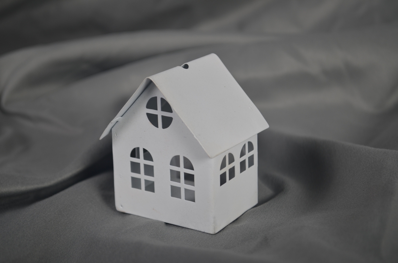 Kovový domeček na čajovou svíčku bílý II. jakost