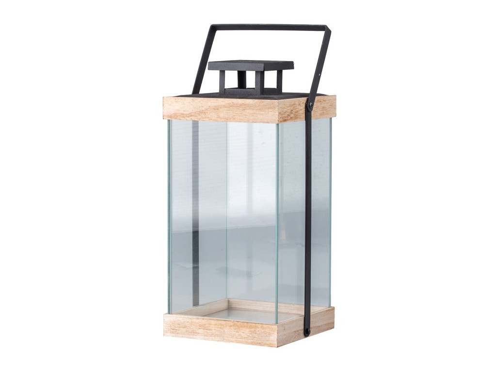 Lucerna kov, dřevo 165x165x410mm, přírodní, černá