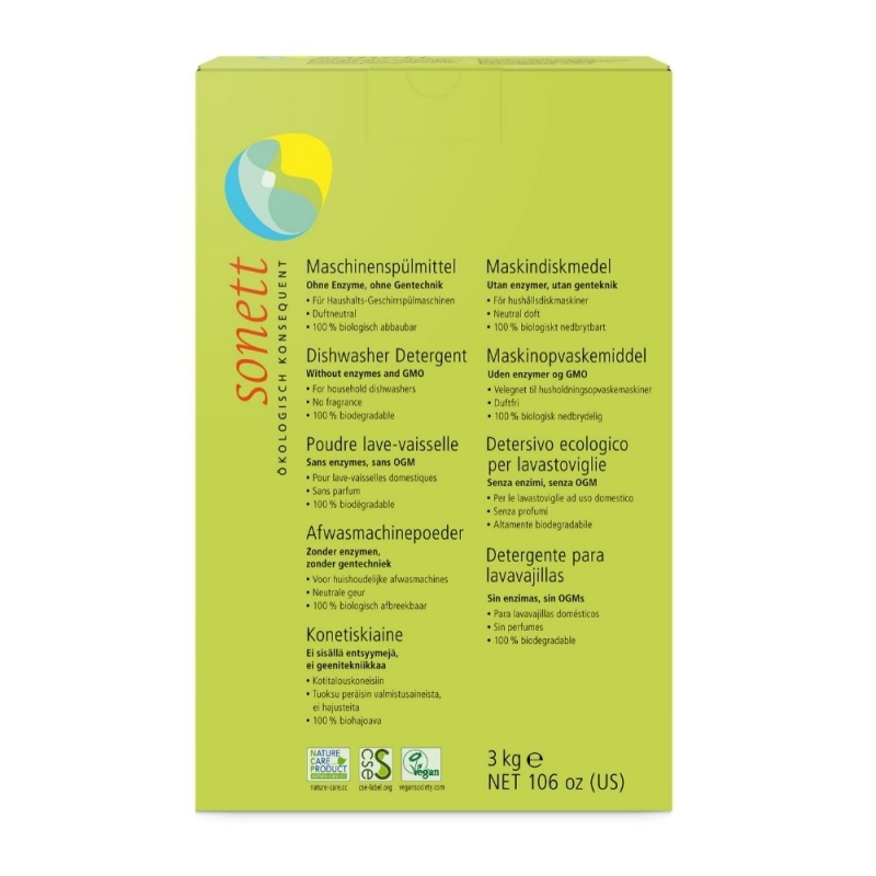 Tento 100% přírodní prášek do myčky od Sonettu snadno čistí i zaschlé skvrny i přesto, že neobsahuje enzymy, fosfáty, tenzidy a agresivní odstraňovače skvrn na bázi chlóru.Certifikáty:NCP, CSE, Vegan SocietyCo s obaly:Dávkování:Hmotnost:3100Hodnota pH:cca 10 - 11 (20 °C, 5 g / l...