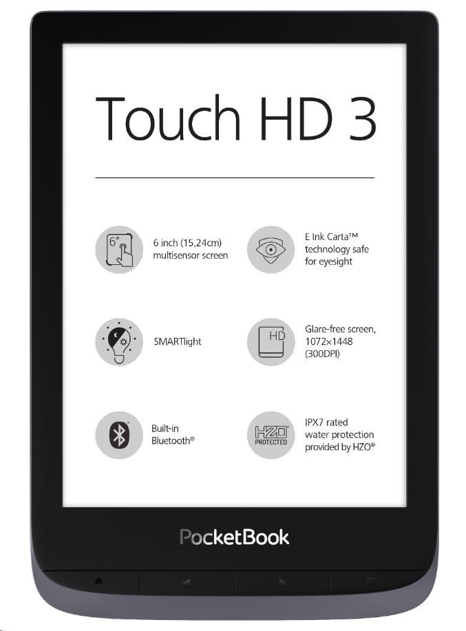Touch HD 3DisplejZařízení je vybaveno E Ink Carta™ multisenzorovou HD obrazovkou (1072 × 1448, 300 DPI), která zaručuje ostrost stránky jako u skutečné knihy.SMARTlightTechnologie SMARTlight plynule vyvažuje světlo, aby byla četba příjemná ve dne i v noci.OchranaKompletní vodotěsnost zásluhou...