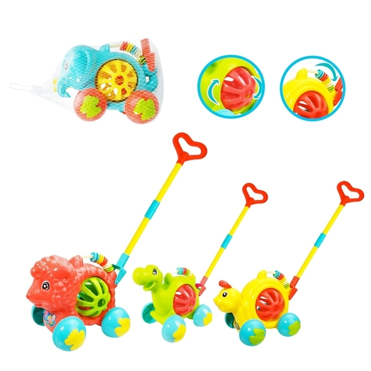 Aby byla procházka zábavnější. Barevné zvířátko na tlačení. Při tlačení se zvířátku začne kroutit míček s chrastítky, kterou má místo bříška. Na zádech má barevné počítadlo. Možnost výběru ze čtyř druhů - slimák, dráček, slůně nebo beránek. Výška hračky s holí - 64 cm. prečítať celé