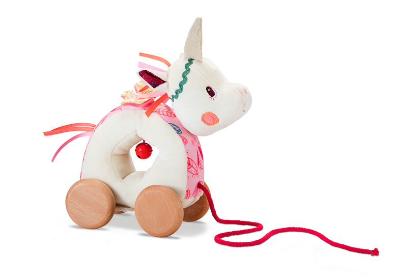 ednorožec Louise doprovodí děti při prvních krůčcích. Když dítě zatahá za provázek, jednorožec zavrtí hlavou a zazvoní. Ulehčí dětem první krůčky a pomůže jim zvětšovat důvěru ve svoje schopnosti. Kolečka se dají snadno sundat, pokud se Louise potřebuje vykoupat... Tak je vždy pěkná a elegantní!