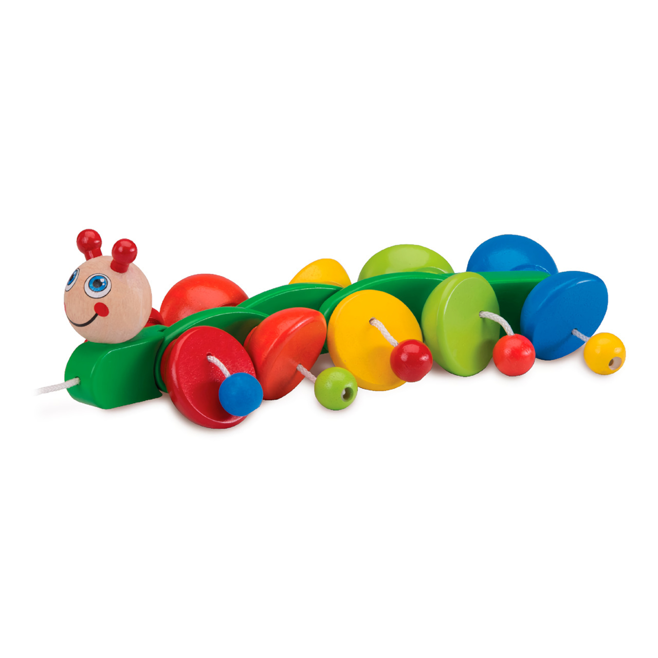 Tahací housenka je složena z množství článků, díky čemuž je velmi ohebná. K tahání je vybavena šňůrou a pohybem se vlní, přitom vydává jemné klapavé zvuky. Je vyrobena z odolného masivního dřeva atraktivně lakovaného výraznými barvami. Hlavní vlastnosti:pohyb sprevádza zvukomodolné provedení z masivního dřevavytříbená barevnost a povrchová úprava