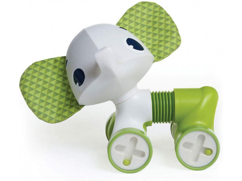 Roztomilá hračka v podobě slona s natahovacím harmonikovým tělem a otočnými kolečky zabaví dítě od prvních momentů na bříšku přes lezení a samostatné sezení až po první krůčky.