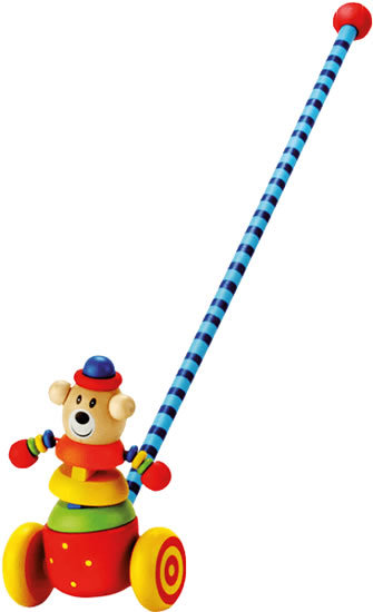 Nádherný dřevěný medvídek na tyči se při jízdě nákladní ze strany na stranu a vykouzlí tak úsměv na tváři všem dětem. Medvídek je krásně barevný a stane se tak věrným společníkem na každém kroku Vašeho děťátka.