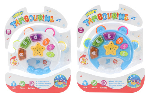 Táto plastová tamburína je navrhnutá špeciálne pre malé detské rúčky a ľahko sa s ňou manipuluje. Po stlačení tlačidiel tamburína svieti a prehráva zvuky, čo deti okamžite zaujme a podporí ich záujem o hudbu a hru.