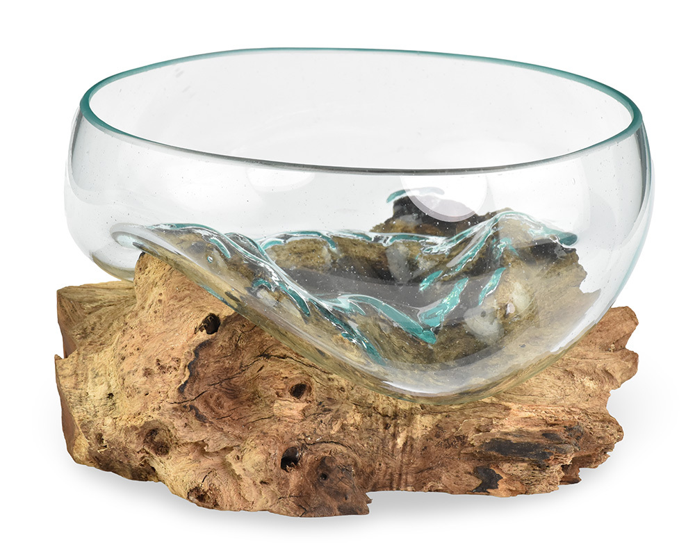 Skleněná mísa na dřevě 20 cm velká - var. Q