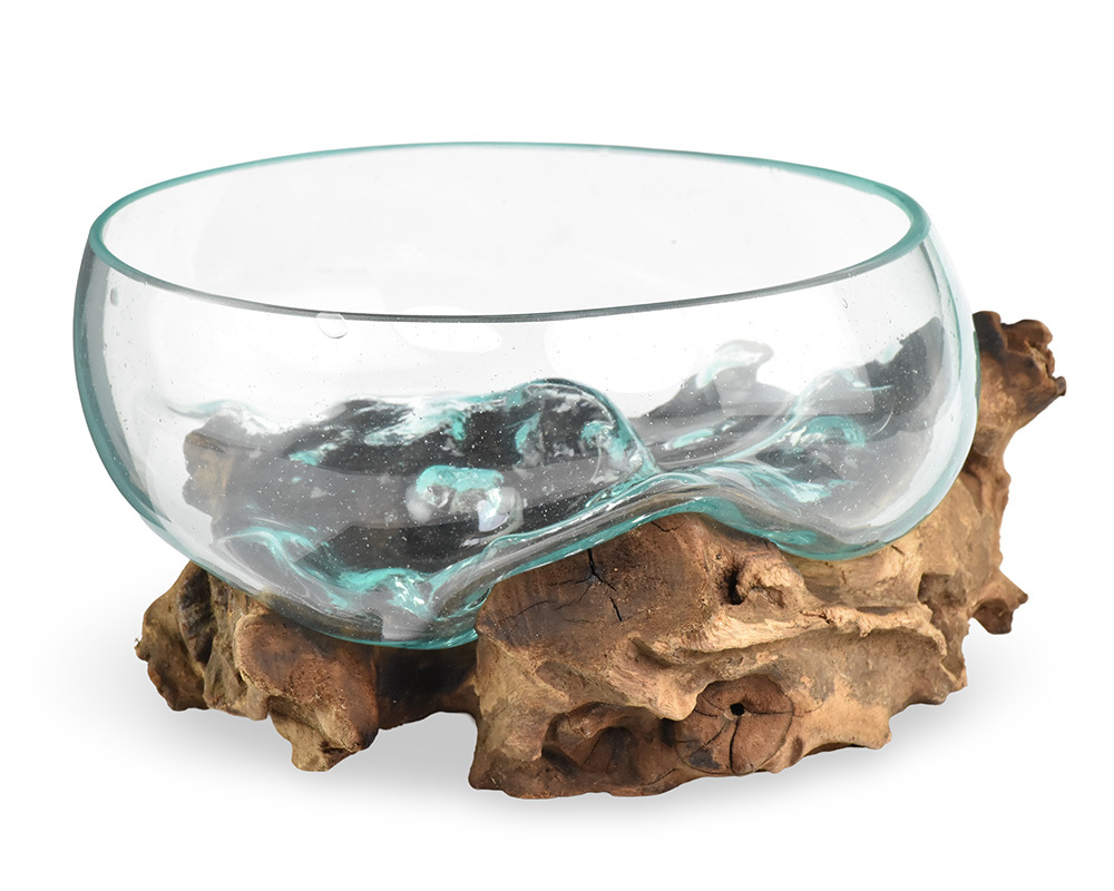 Skleněná mísa na dřevě 20 cm velká - var. E