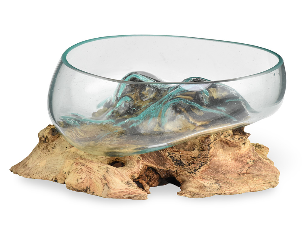 Skleněná mísa na dřevě 20 cm velká - var. I