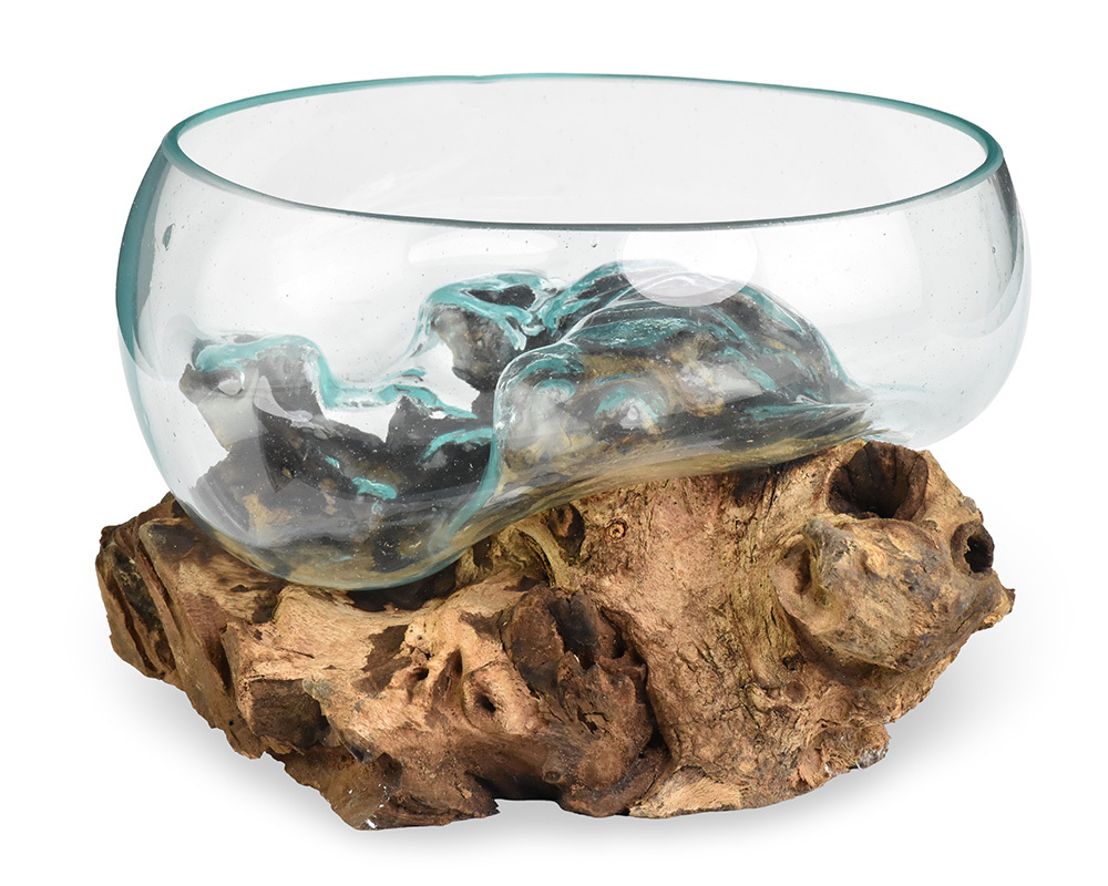 Skleněná mísa na dřevě 20 cm velká - var. K
