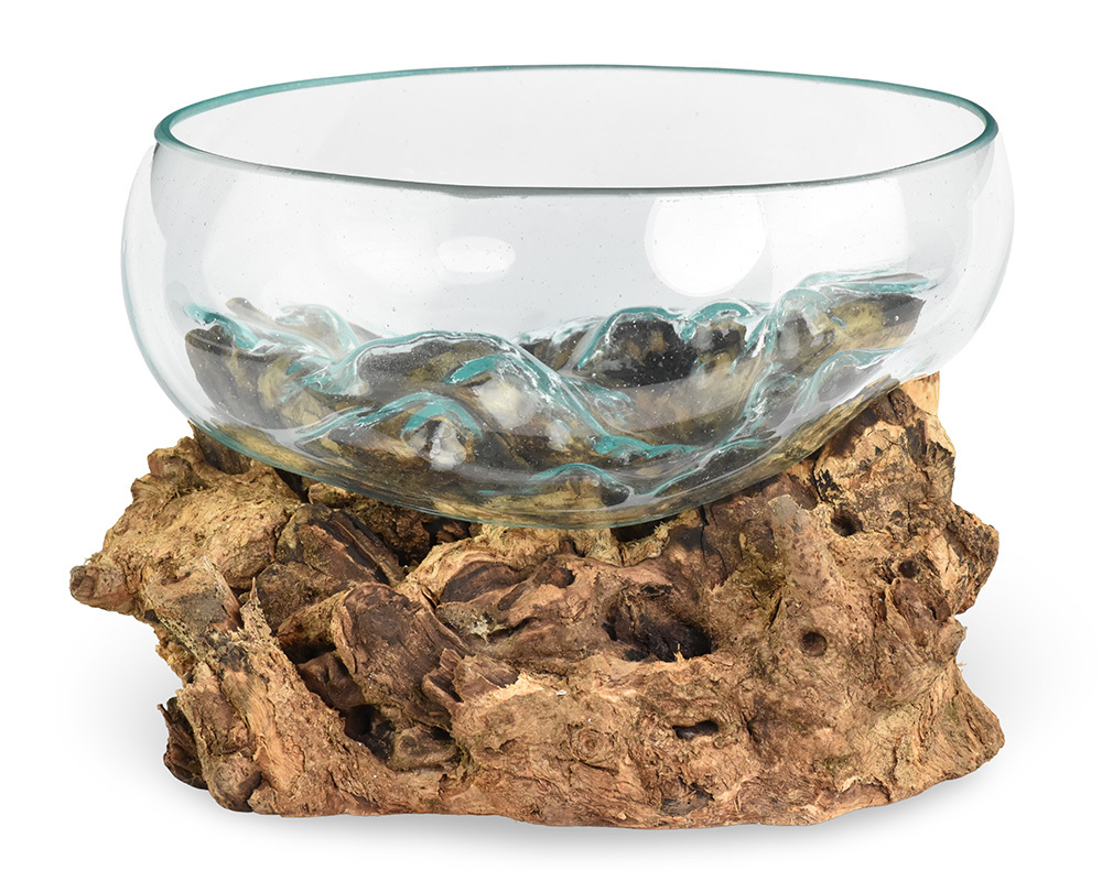 Skleněná mísa na dřevě 20 cm velká - var. O